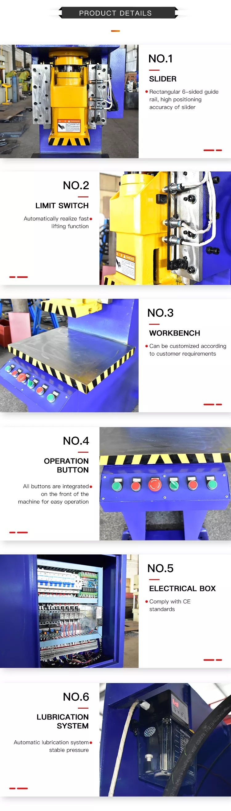 ● Avoid slider falling accidents due to brake failure or connect rod breadage .