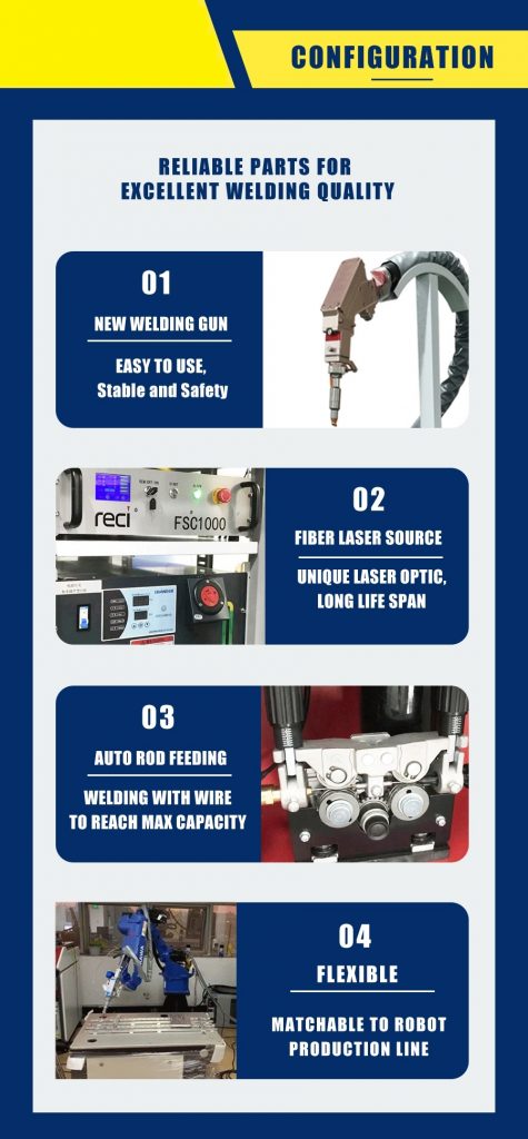 Laser welding power adjustable, thin stainless steel welding without any problem.